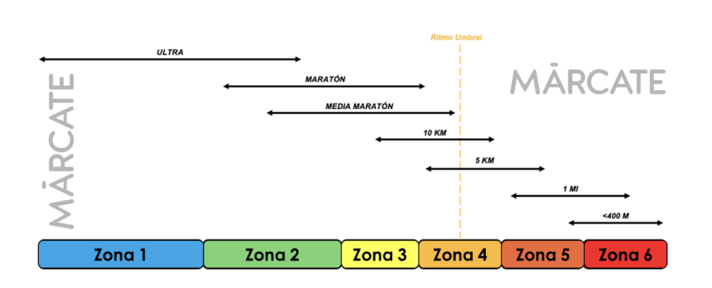 - En distancias largas (maratón y medio maratón): comenzar en zona verde, progresar hacia amarillo y evitar entrar a rojo demasiado pronto.